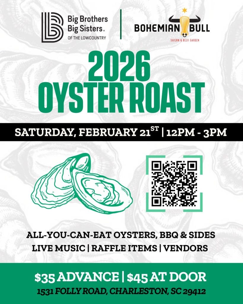 Your ticket includes an all-you-can-eat oyster roast, BBQ, and sides, along with live music and an exclusive raffle available only to event guests. It’s the perfect way to spend a Saturday afternoon enjoying good food, good company, and a true Lowcountry tradition.