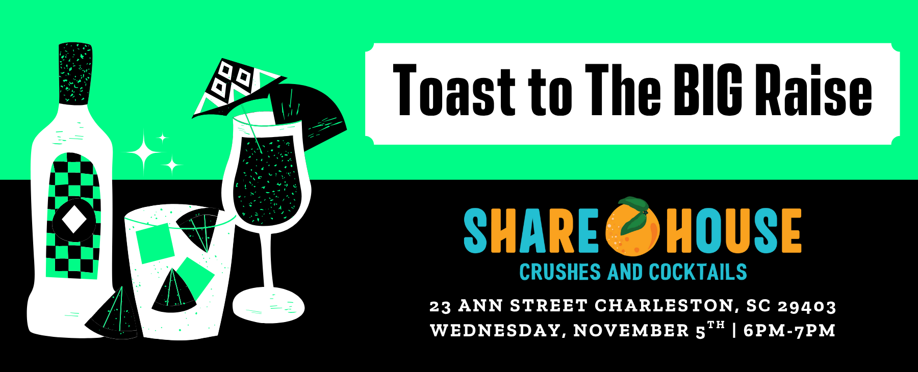 Join us at Sharehouse on Wednesday, November 5th from 6–7 PM for a special happy hour celebration to mark the close of our BIG Raise peer-to-peer fundraiser!